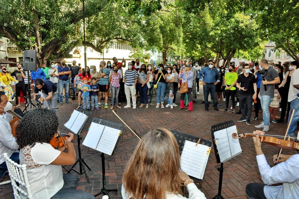 La iniciativa del Ministerio de Cultura, el Ayuntamiento del Distrito Nacional, la Fundación Sinfonía, la Dirección General de Bellas Artes y la Escuela Nacional de Danza, llega a su última entrega, con los conciertos sorpresa que han implementado estas instituciones a favor de la cultura dominicana.