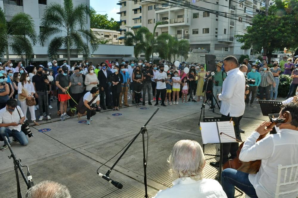 La primera parada fue a las 9:30 de la mañana, en Piantini, donde se concentraron decenas de residentes, respetando el distanciamiento social, y el uso de mascarilla como medida de seguridad para evitar el contagio del COVID-19.