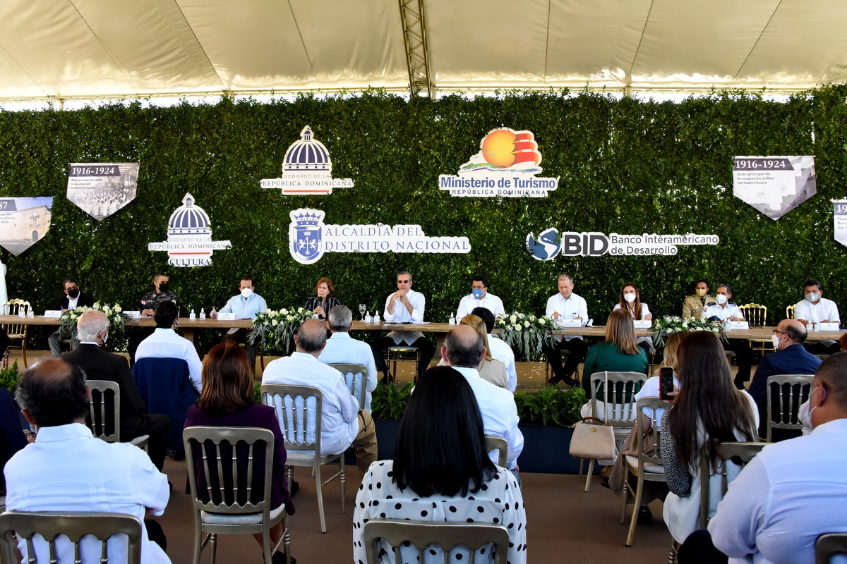 El acto fue encabezado por Abinader, quien estuvo acompañado por Carmen Heredia, David Collado y José Ignacio Paliza, ministros de Cultura, de Turismo y Administrativo de la Presidencia, respectivamente, así como por Miguel Coronado Hunter, representante del BID en el país; la alcaldesa del Distrito Nacional, Carolina Mejía; el viceministro de Patrimonio Cultural, Gamal Michelén y el director general de Museos del Ministerio de Cultura, Carlos Andújar.