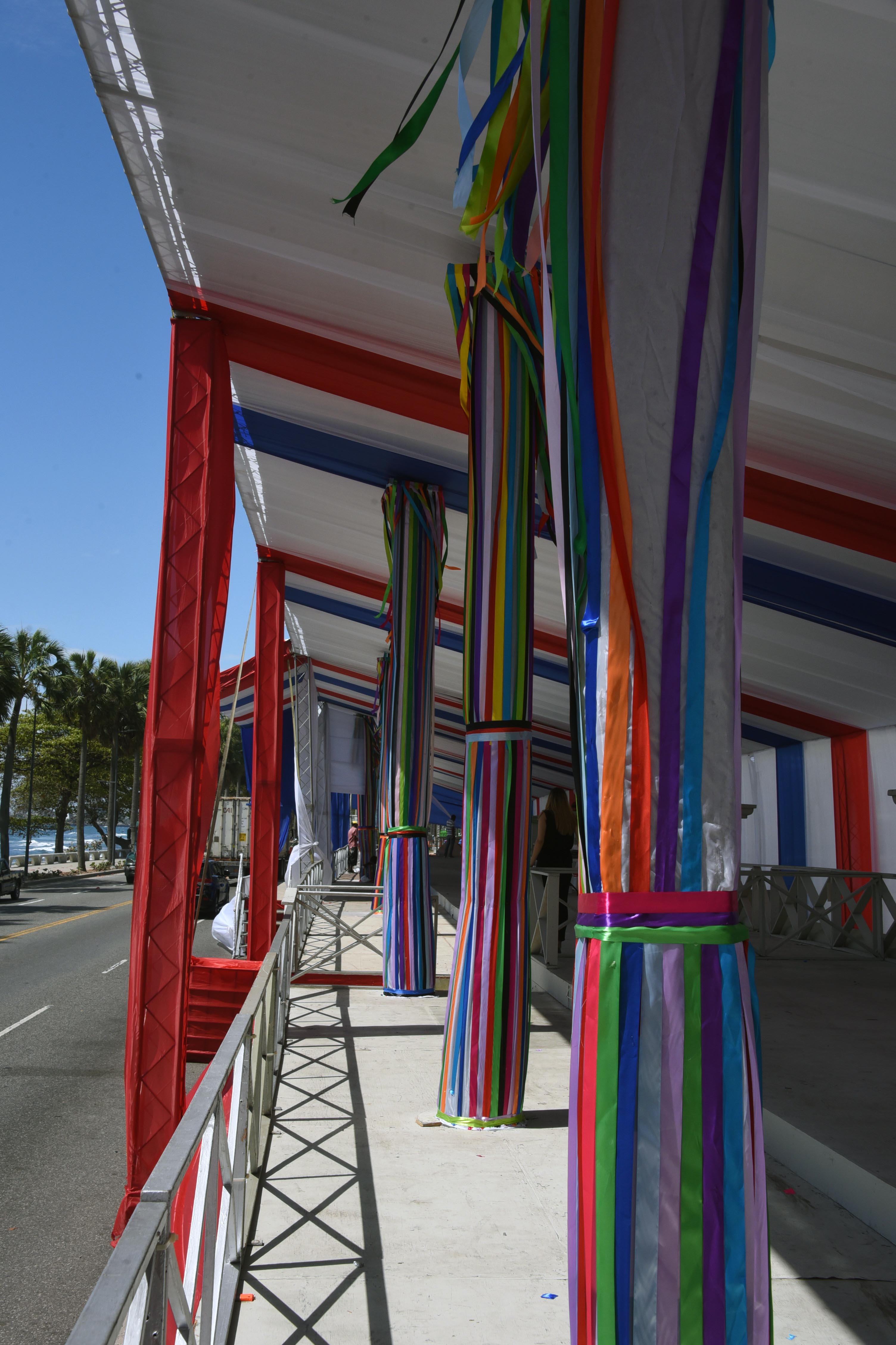 Una gigantesca estructura se levanta frente al Hotel Jaragua, desde la cual el ministro de Cultura, arquitecto Eduardo Selman, y cientos de invitados especiales, así como los representantes de los medios de comunicación, presenciarán el desfile, que estará encabezado por los reyes del carnaval: la actriz Nashla Bogaert y el actor Frank Perozo.
