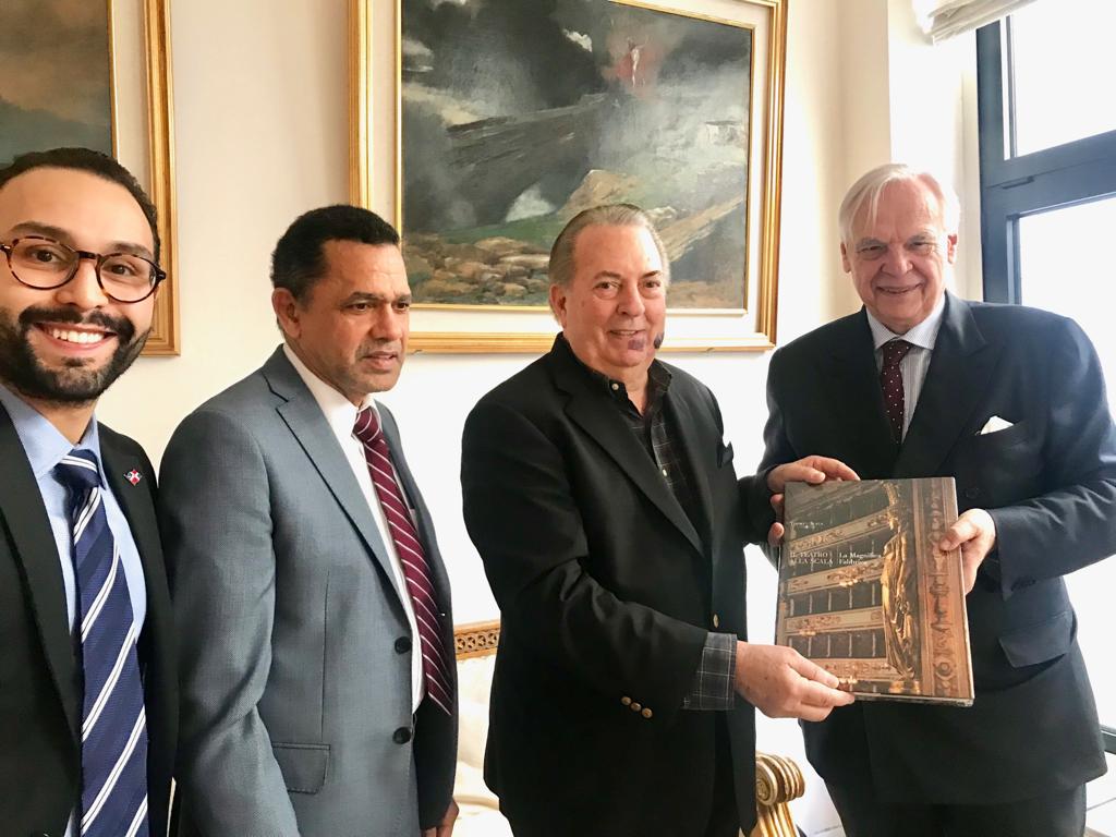Selman, quien está de visita en esta nación europea, estuvo acompañado del cónsul dominicano en Milán, Fernando Cáceres, y el vicecónsul, Joaquín Taveras; mientras que el superintendente Pereira recibió la comitiva junto a la directora de ceremonial de La Scala, Donatella Brunazzi. En el mismo acto, Pereira entregó al ministro Selman un libro sobre el famoso teatro.