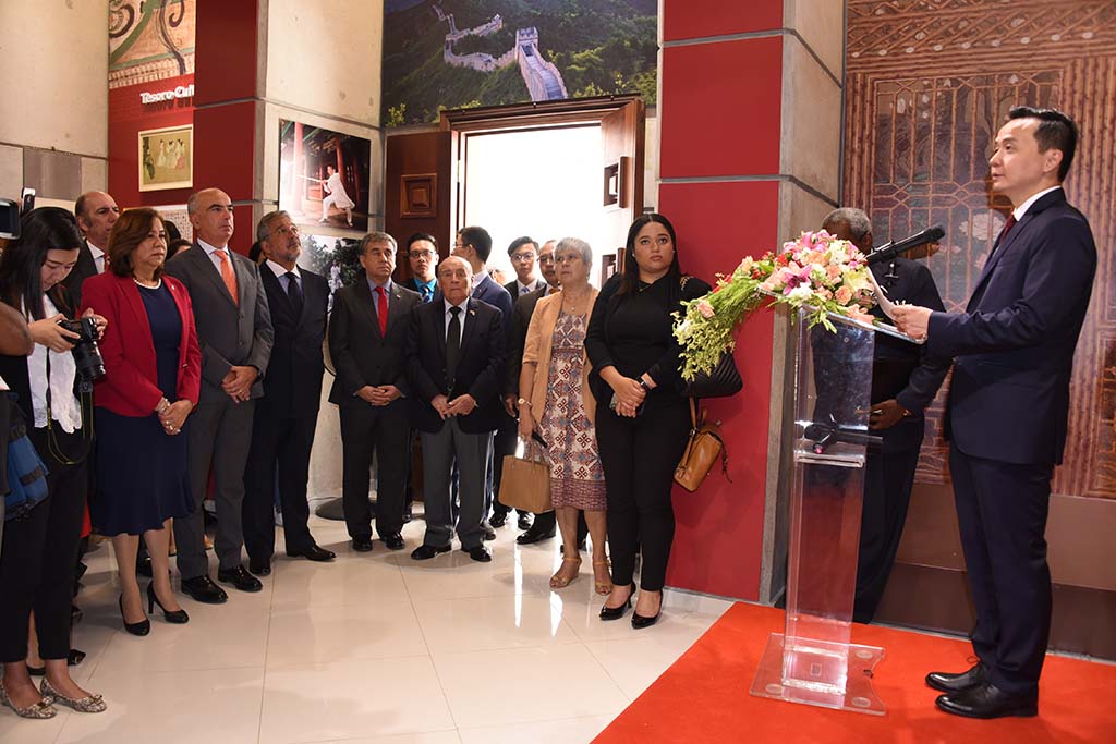 Durante su discurso, el embajador Zhang Run explicó que la exposición permanente está dividida en: China próspera, China hermosa y China humanista, resaltando la evolución de la República Popular de China.