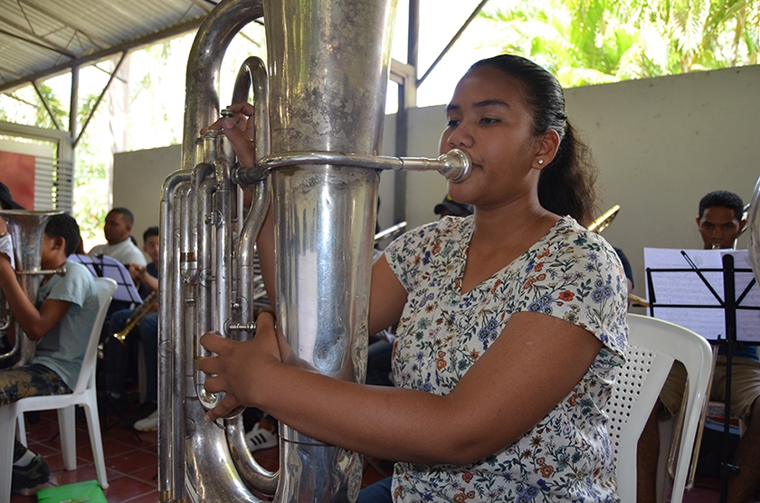 “Es el programa con mayor cantidad de bandas de música en República Dominicana, unas 30 en total, en las cuales los alumnos aprenden a leer partituras y a tocar un instrumento; al mismo tiempo que escuchan a los otros en el grupo, armonizando sus sonidos con los del conjunto”, indicó Mejía.