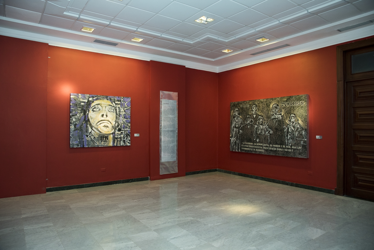 “No sólo él cambia la escala, sino la eleva a una dimensión alegórica, el espacio se anima de personajes y/u objetos, el lienzo vacío y desalmado se convierte en una atmósfera real-simbólica, poblada de signos, de figuras, de letras, de cifras, de firmas, de mensajes. Curiosamente irradiante, la sombra inunda el interior, una corporeidad o varias se implantan, un protagonista se hinca emblemáticamente, una máscara protectora va y viene”, sostuvo.