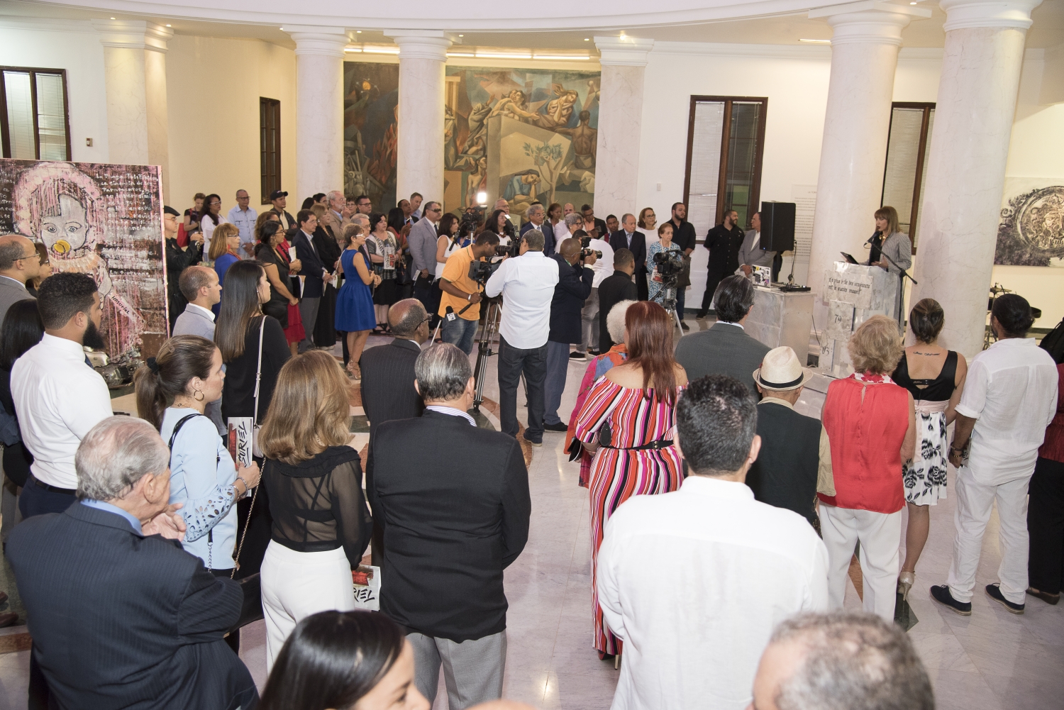Las palabras de bienvenida fueron pronunciadas por Milagros Germán, quien fungió como maestra de ceremonias; seguidos de los discursos de Odalís G. Pérez, investigador, educador y crítico de arte; e Inés Tolentino, en representación de Marianne de Tolentino, directora de la Galería Nacional de Bellas Artes y curadora de la muestra.