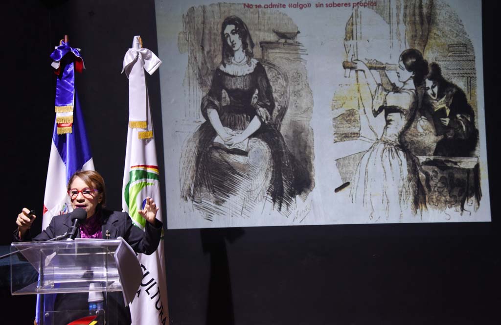 La destacada escritora presentó imágenes de mujeres pioneras que alzaron sus voces en demanda de la igualdad en la sociedad dominicana.