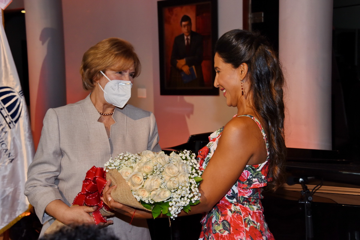 Al finalizar el recital lírico, Heredia entregó un ramo de flores a la soprano Peña Comas y agradeció por tan majestuosa interpretación y por su distinguida presencia en la sede de la institución.