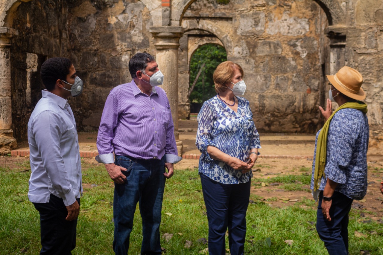 Previo al acto en las ruinas de Nigua, Martha Roquel, directora del Centro de Restauración de Obras de Artes y Documentos Históricos, explicó a la ministra la importancia y valor histórico que representa las Ruinas de Nigua en el ámbito del patrimonio dominicano.