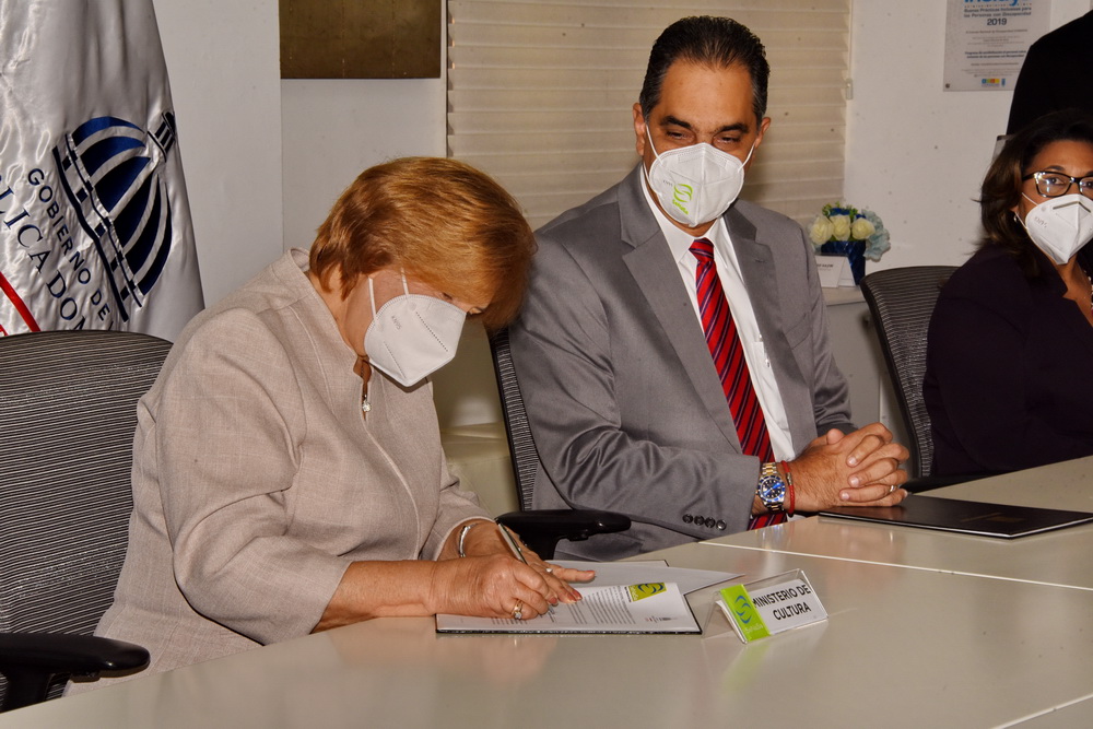 El acuerdo firmado por la ministra de Cultura, profesora Carmen Heredia y el director ejecutivo de Senasa, Santiago Hazim en la sede de esa institución, fue suscrito en cumplimiento con los criterios establecidos del Sistema Único de Beneficiarios (Siuben).