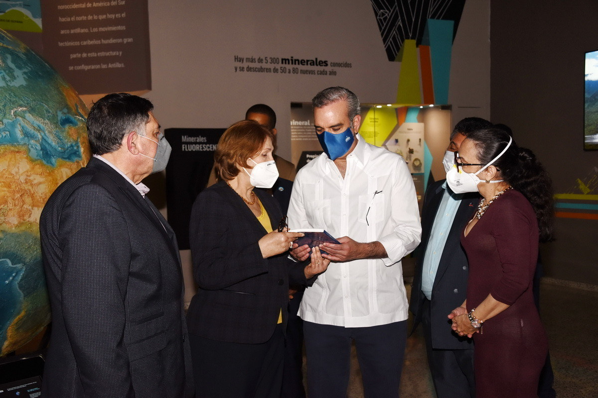 Para finalizar el recorrido, el presidente Abinader fue guiado por algunas salas del Museo de Historia Natural Prof. Eugenio de Jesús Marcano en compañía de la directora Celeste Mir, quien lo puso al tanto de la situación que vive el plantel y los objetos que se exhiben.