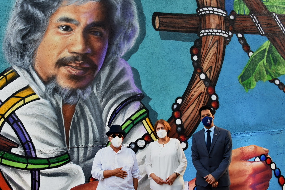 El acto fue encabezado por la ministra de Cultura, Carmen Heredia, en la Plaza de la Cultura Juan Pablo Duarte, donde fue inaugurada esta gigantesca obra que proyecta la trayectoria de la leyenda de la música tropical que nació en Santiago de los Caballeros.