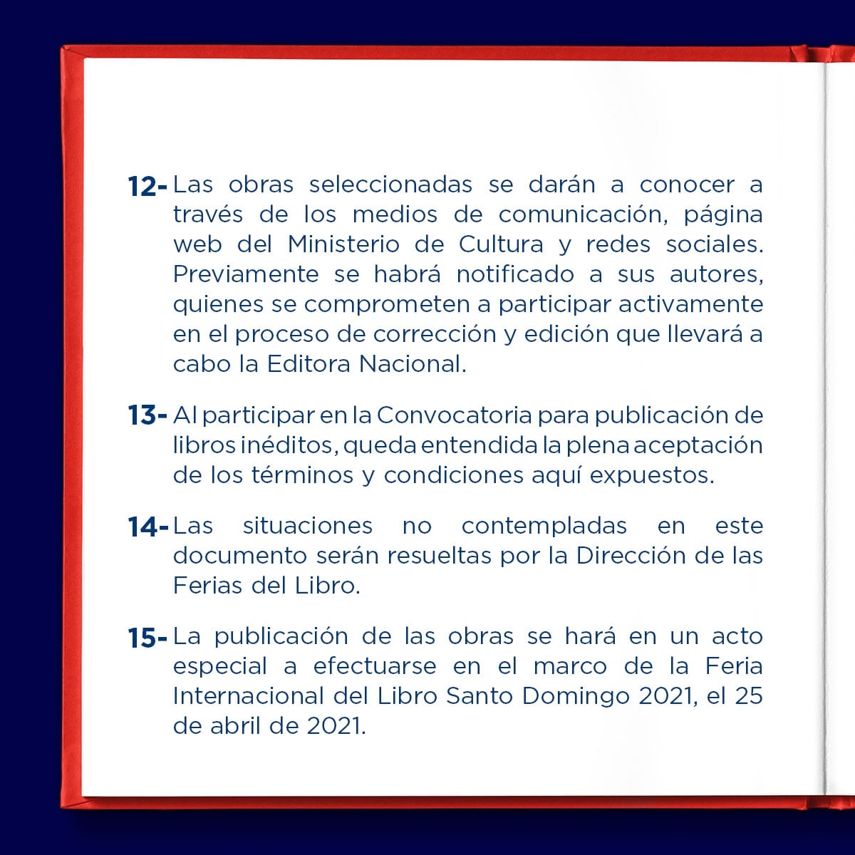 El Ministerio de Cultura y la Dirección de las Ferias del Libro invitan a escritores a participar en la Convocatoria para publicación de Libros Inéditos en el marco de la Feria Internacional del Libro Santo Domingo 2021.