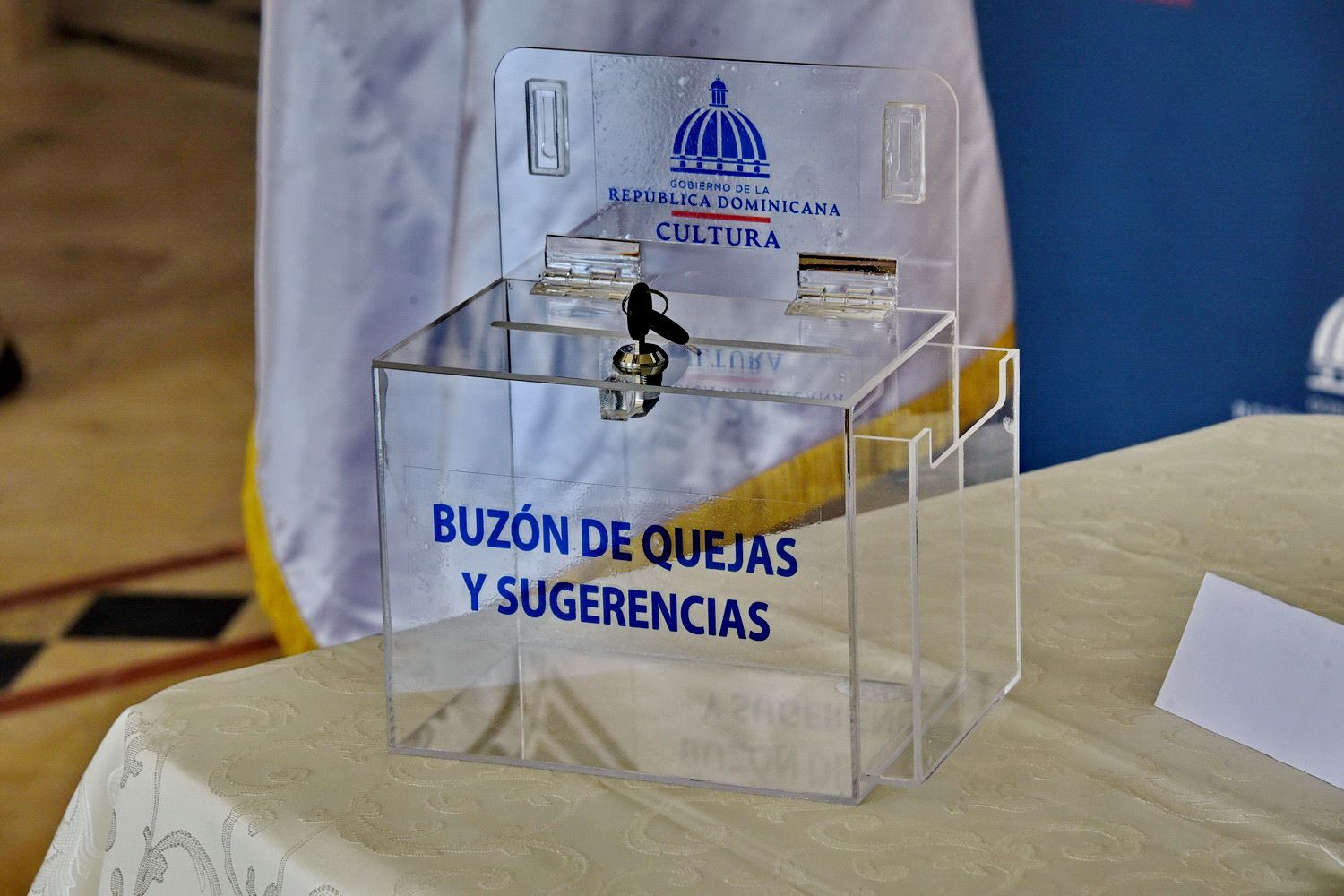 La presentación de los buzones de sugerencias estuvo a cargo de Elías Pérez, encargado de la Oficina de Acceso a la Información Pública, en tanto que Emmanuel Castillo, director de Planificación y Desarrollo, abordó la filosofía institucional que regirá al Ministerio de Cultura en la presente gestión.
