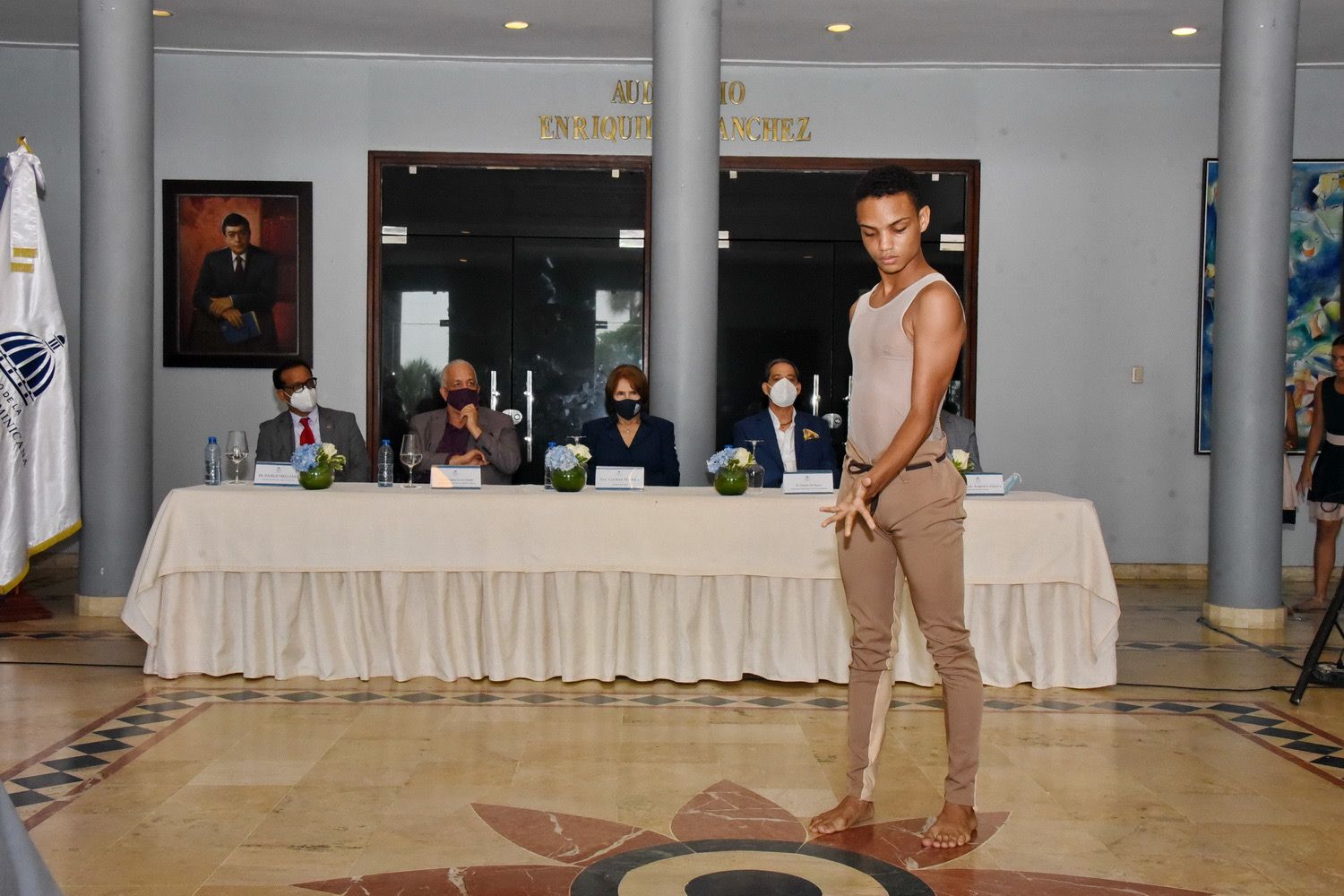 Las letras del himno nacional fueron interpretadas por el barítono Eduardo Mejía. Asimismo, los integrantes de la Escuela Nacional de Danza (ENDANZA) ofrecieron una presentación artística.