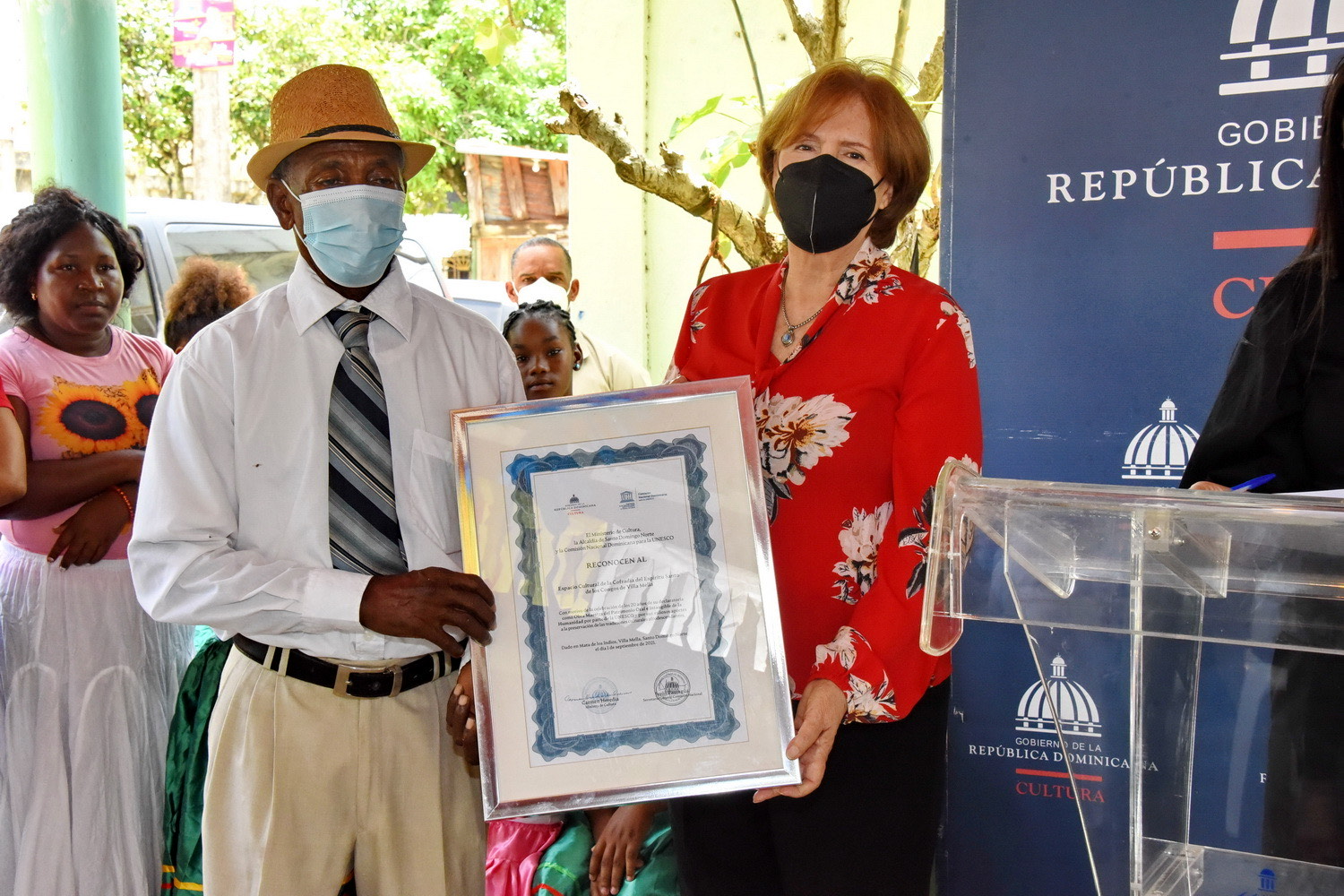En el acto también estuvieron presentes Jesús Paniagua, secretario general de la Comisión Nacional Dominicana para la UNESCO; Carlos Guzmán, alcalde de Santo Domingo Norte; Blanca Rodríguez, vicealcaldesa de Santo Domingo Norte, y Darío Solano, coordinador de la Fundación Cultural La Negreta.