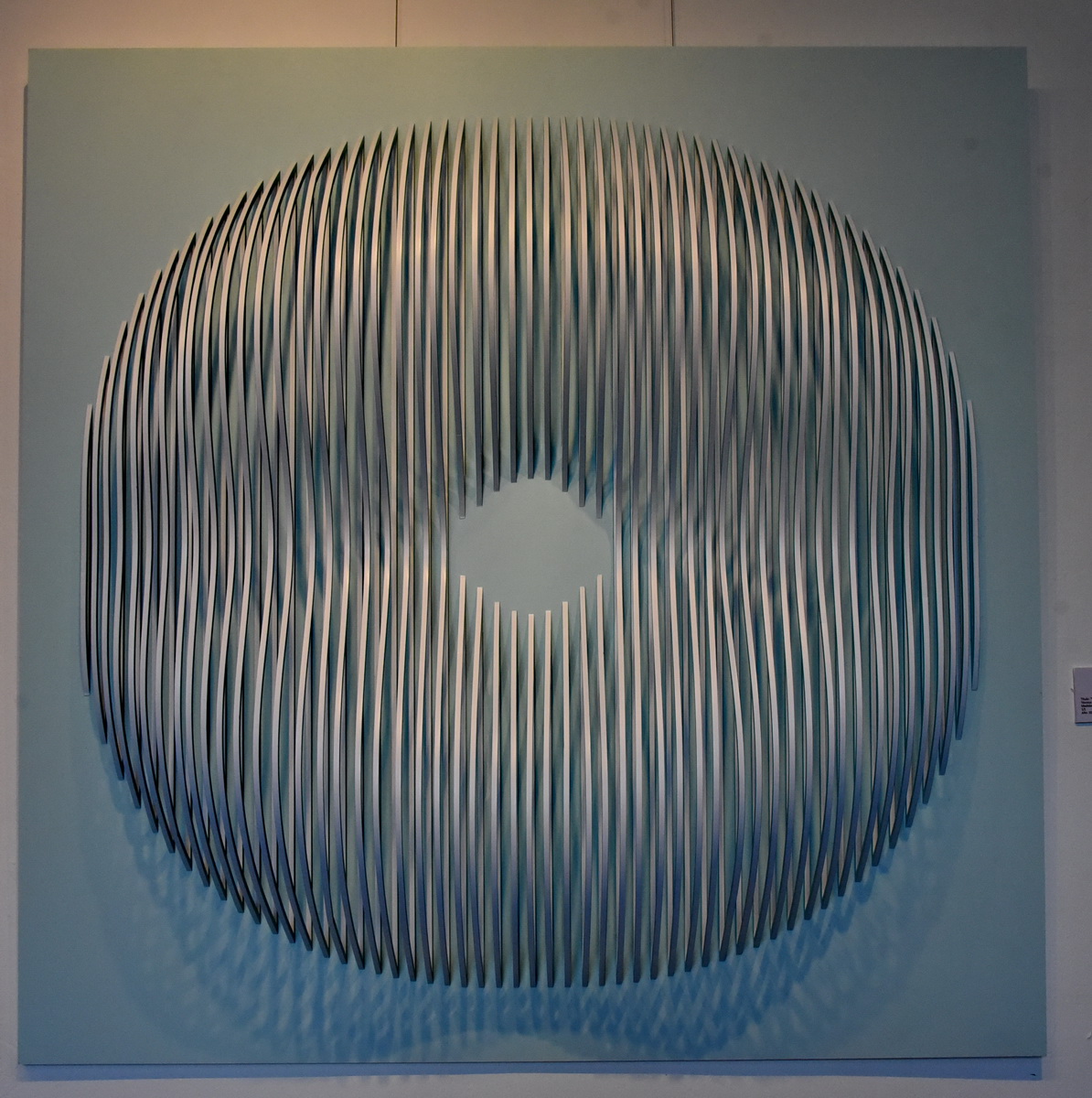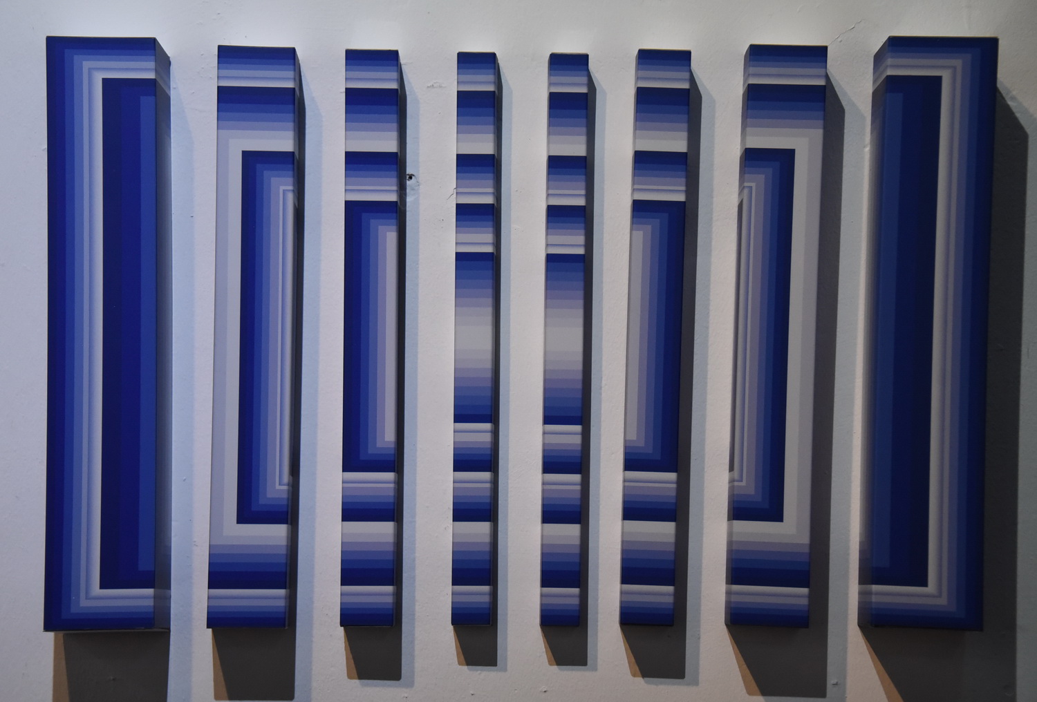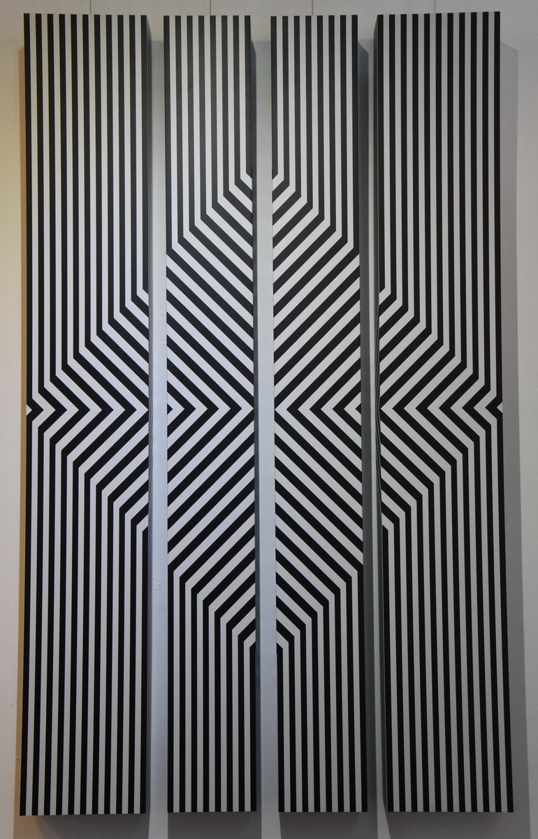 La muestra está compuesta por unas 20 obras, las cuales presentan una gran variedad de colores, sutiles combinaciones de grises, plateados, oro, blanco y negro, así como colores radiantes, con el fin de crear un efecto de vibración e impacto visual, convirtiendo la apreciación de cada pintura en una experiencia única. En su obra, la artista trasciende lo cinético, partiendo de un acertado e innovador uso del movimiento.