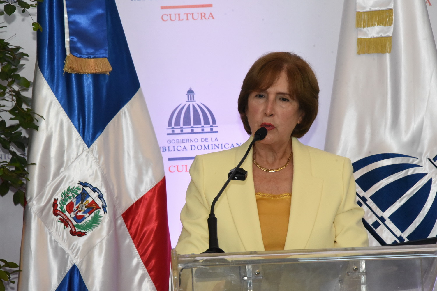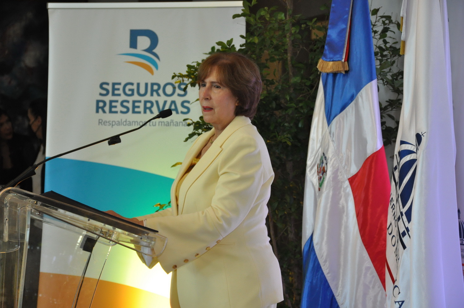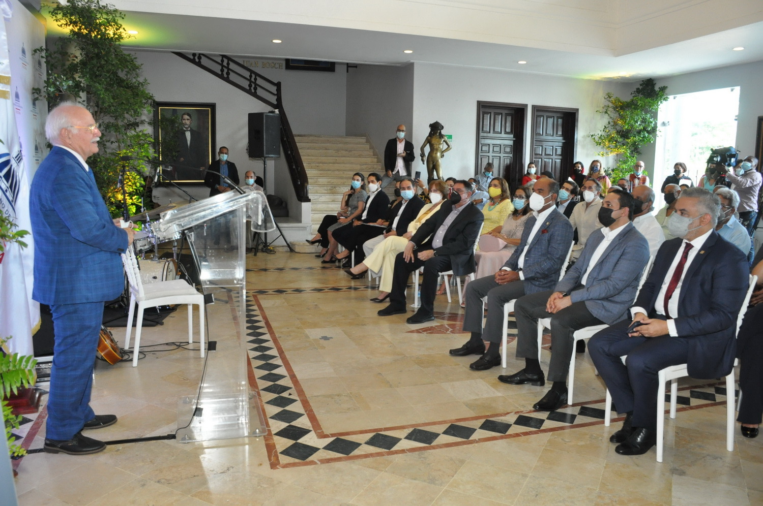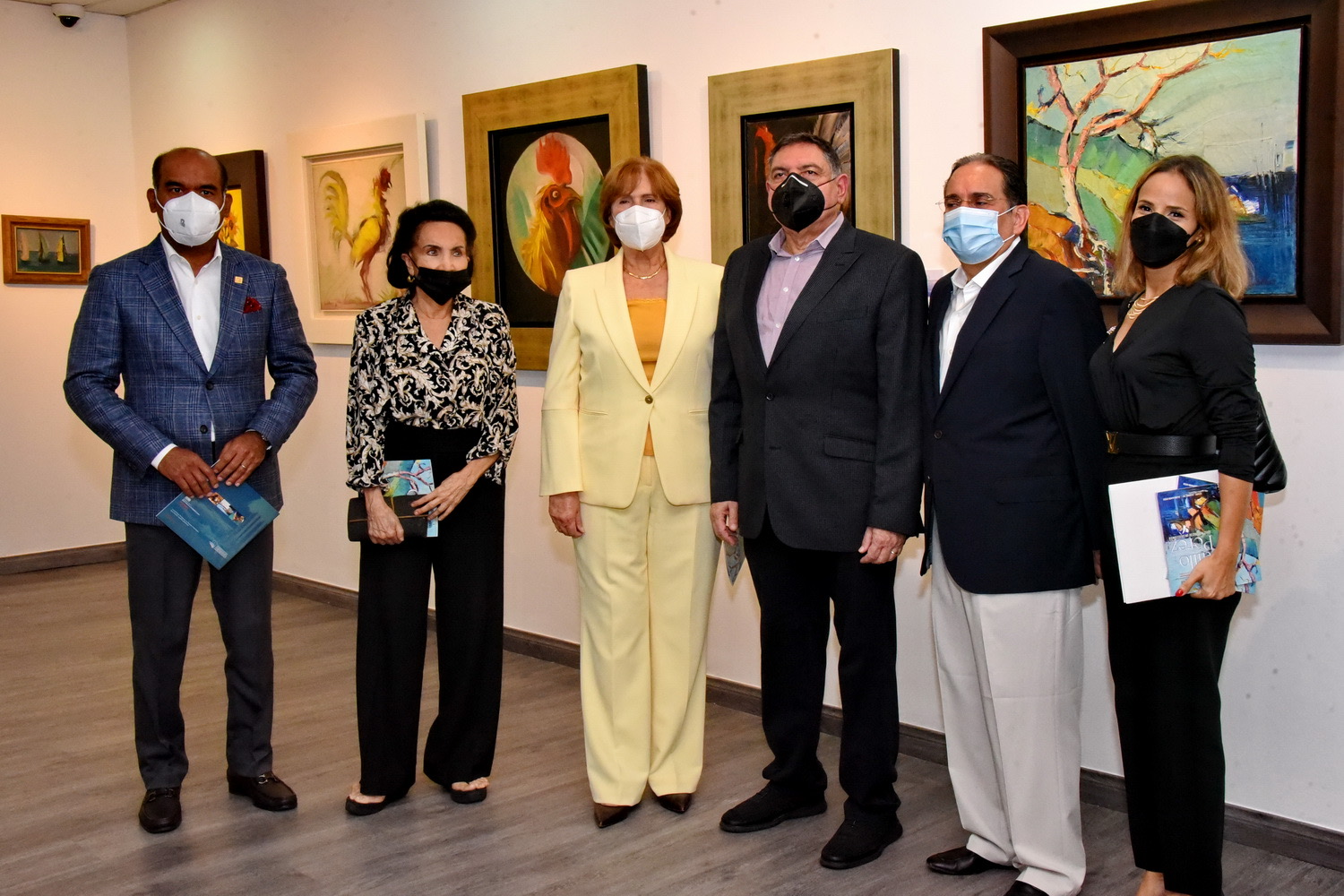 El acto estuvo encabezado por la ministra de Cultura, Carmen Heredia de Guerrero, quien estuvo acompañada por los viceministros Gamal Michelén y José Luis Pérez, así como por el coleccionista y propietario de las obras que se exhiben en esta exposición, Juan Portela Bisonó, y el vicepresidente de Seguros Reservas, Víctor Rojas.