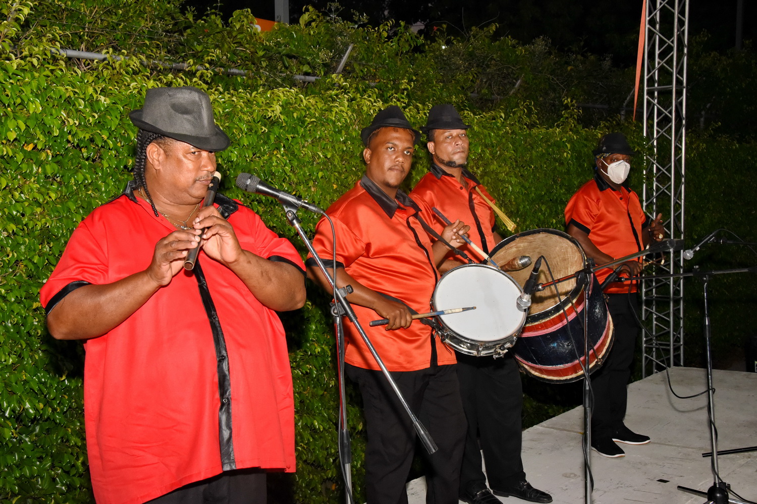 El espectáculo, que contó con el respaldo del Ministerio de Cultura, estuvo a cargo de la Cofradía del Espíritu Santo de los Congos de Villa Mella y Los Guloyas de San Pedro de Macorís.