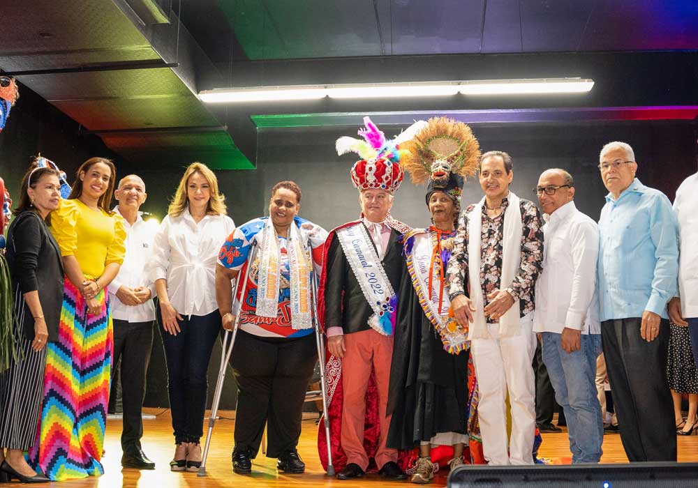 Santo Domingo.- La ministra de Cultura, Milagros Germán, coronó anoche al destacado comunicador Cuquín Victoria y a la maestra de danza Marily Gallardo como rey y reina del Desfile Nacional de Carnaval 2022, en un acto realizado en las instalaciones del Centro Cultural T3, en Sabana Perdida.