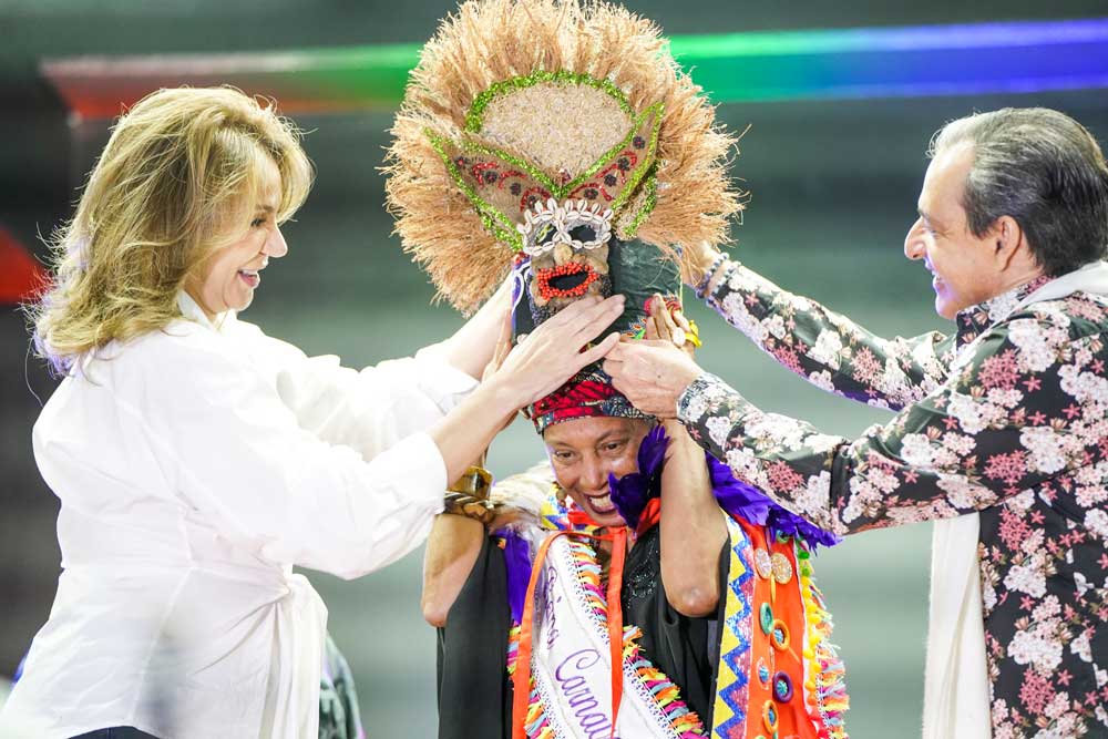 En el marco del evento, el Ministerio de Cultura hizo entrega del Premio Felipe Abreu a Elizabeth Liven Reyes, conocida popularmente como “Buloyita”, por su trayectoria, innovaciones y méritos como propulsora del carnaval dominicano.