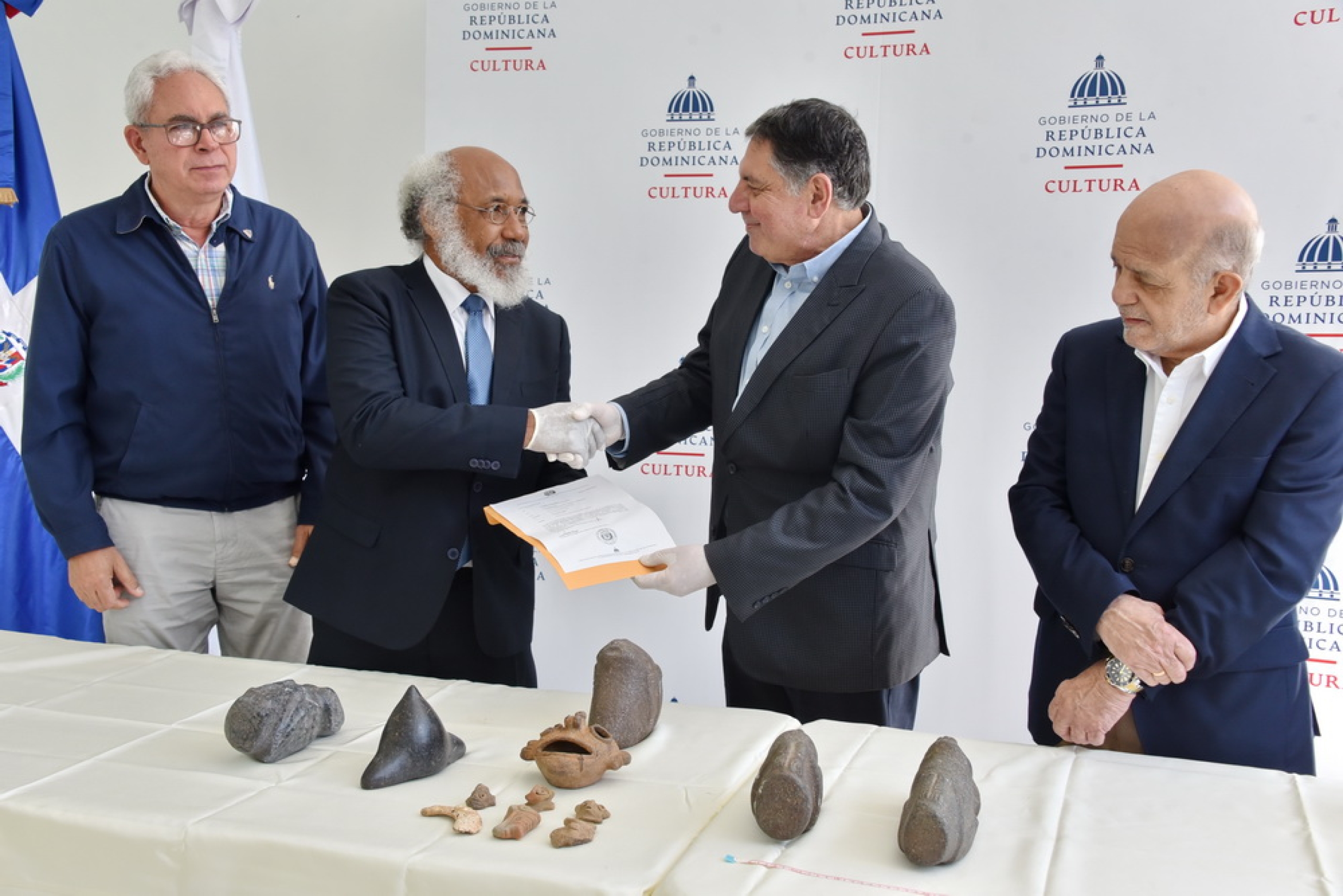 El acto, realizado en las instalaciones del Museo del Hombre Dominicano, estuvo encabezado por el viceministro de Patrimonio Cultural, Gamal Michelén, en representación de la ministra de Cultura, Milagros Germán, quien hizo entrega de las piezas al director de dicho museo, Manuel Vargas Payano.