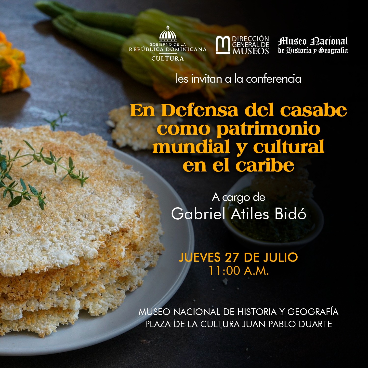 El director del Museo Nacional de Historia y Geografía, José G. Guerrero, destacó que la conferencia sobre el casabe como patrimonio del país constituye un tema de especial importancia para la historia, la geografía y la cultura de la República Dominicana y del Caribe. La misma forma parte del programa de charlas y paneles que realiza el Museo como parte de su misión educativa.
