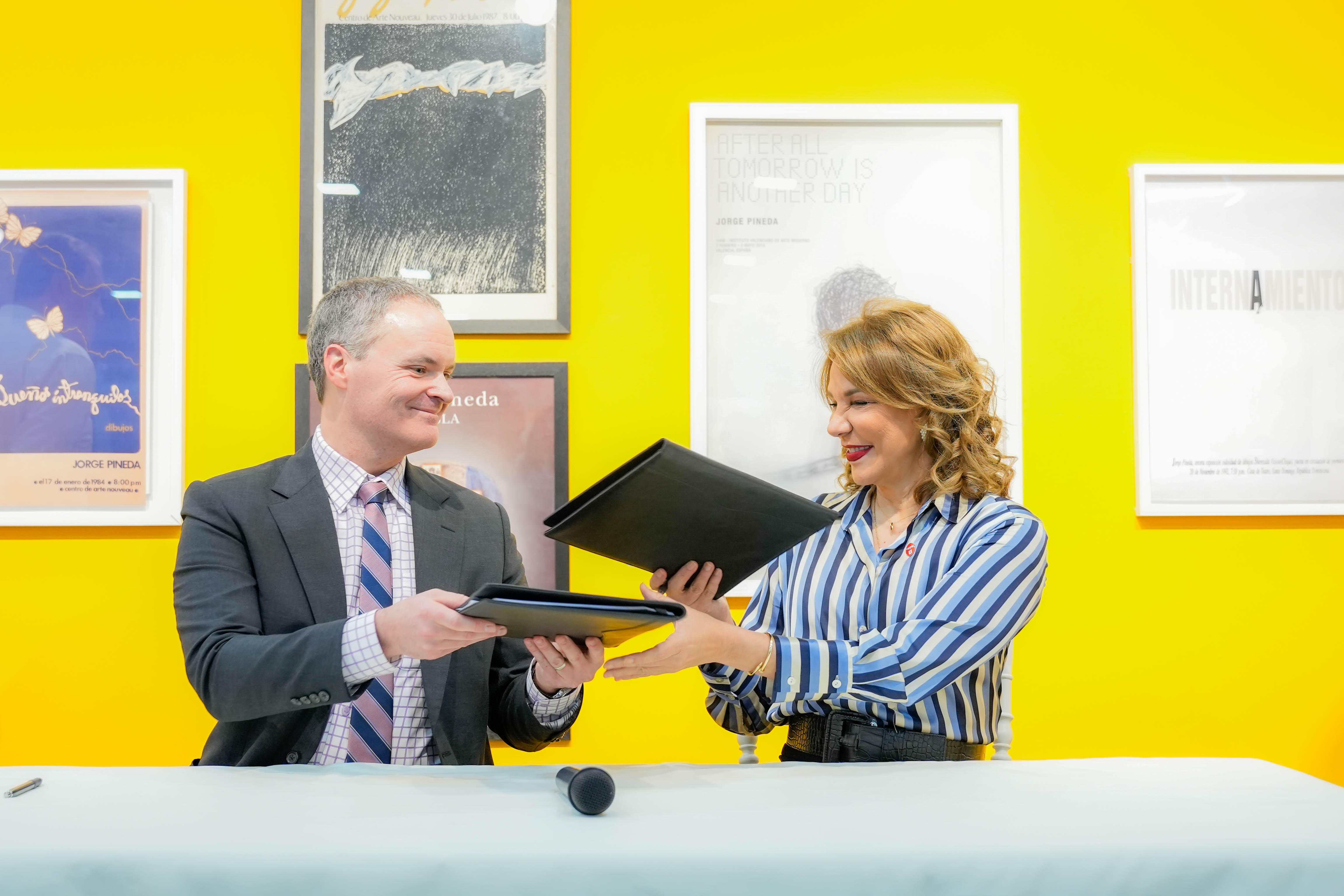Luego de la firma, el vicepresidente asistente de Iniciativas Globales de Berklee College of Music, Jason Camelio, entregó a la ministra Germán una placa que acredita al Conservatorio Nacional de Música de la República Dominicana como socio global de Berklee College of Music.