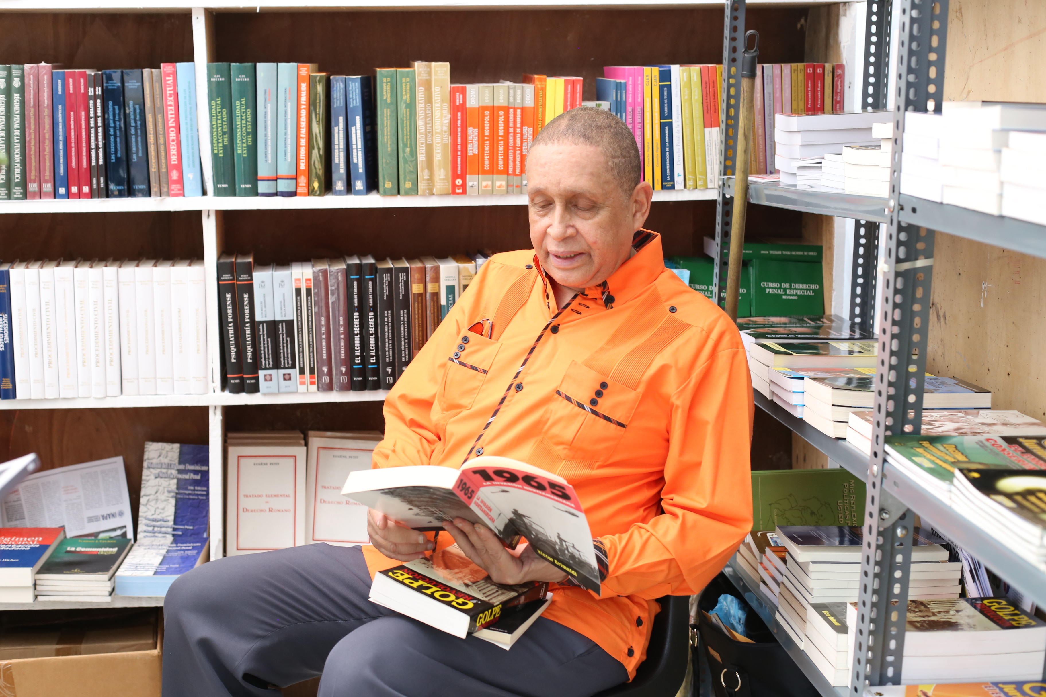 “A la feria le favorece esta tranquilidad. Podemos ver sin tropiezo qué libro nos llevamos”, sostiene Julio César Encarnación, quien aprovechó el espacio para sentarse y hojear lo que le interesaba llevarse a la casa.