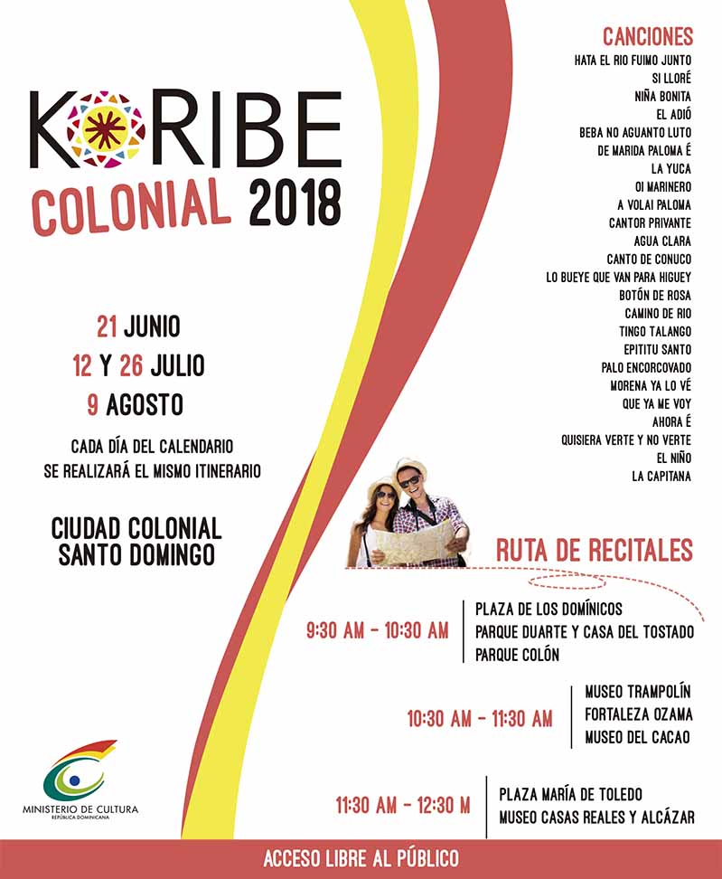 “Koribe Colonial 2018” es auspiciado por el Ministerio de Cultura, y tiene como objetivo acercar a los transeúntes de la Ciudad Colonial al disfrute del arte coral y la difusión de la música dominicana.