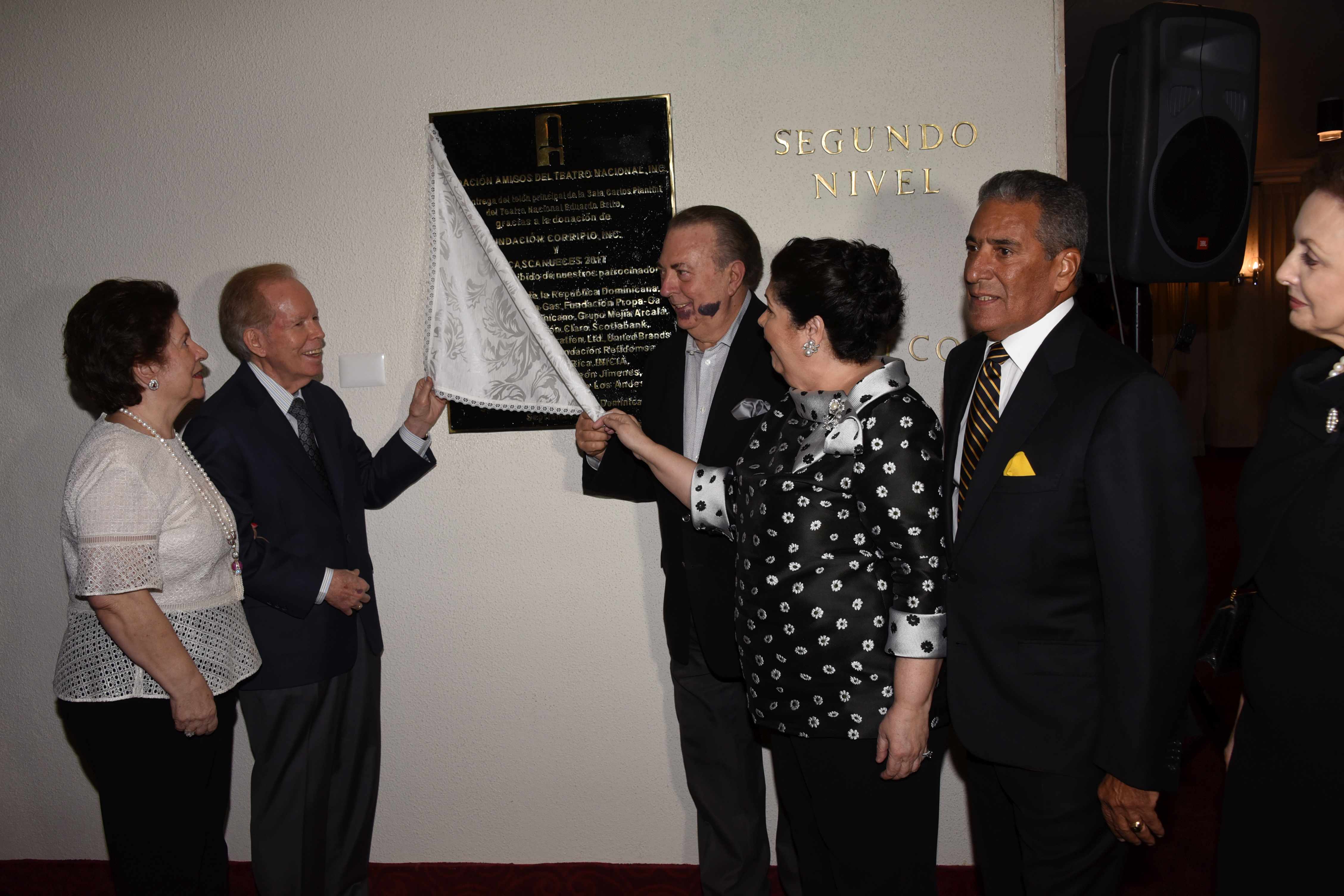 Durante la noche, se develizó una tarja de agradecimiento en honor a Pepín Corripio y otras instituciones que colaboraron para adquirir el telón principal de la famosa sala Carlos Piantini.