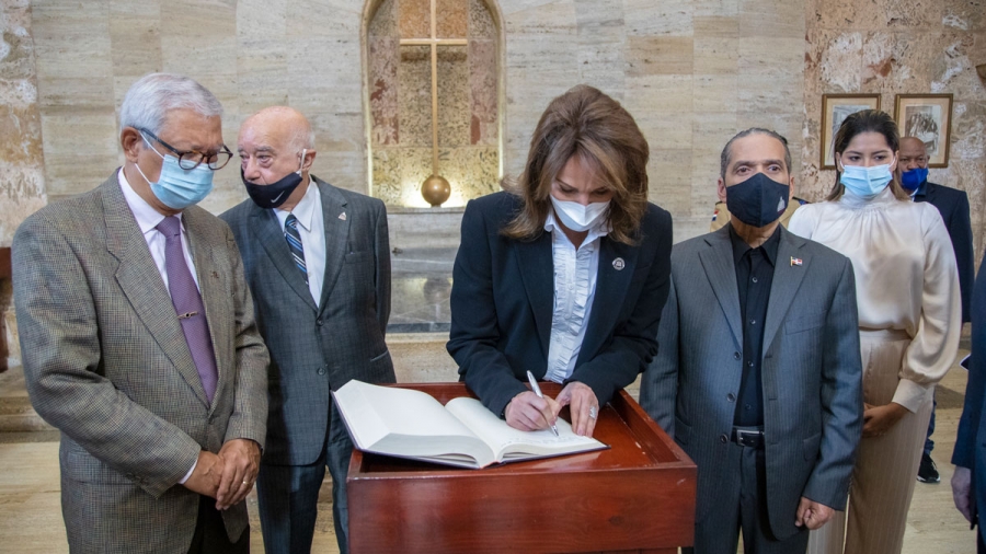 En el acto, celebrado en los jardines de la Plaza de la Cultura Juan Pablo Duarte, el mandatario estuvo acompañado por la ministra de Cultura, Milagros Germán, así como por funcionarios gubernamentales, miembros del cuerpo diplomático y personalidades vinculadas al ámbito cultural nacional.